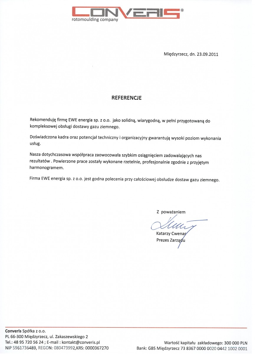 Converis Sp. z o.o.; Międzyrzecz (gaz ziemny)